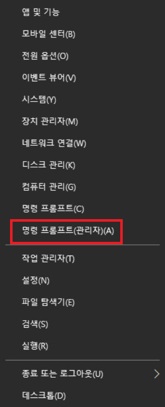 - 명령 프롬프트 (관리자) 혹은 Windows PowerShell (Admin) 실행