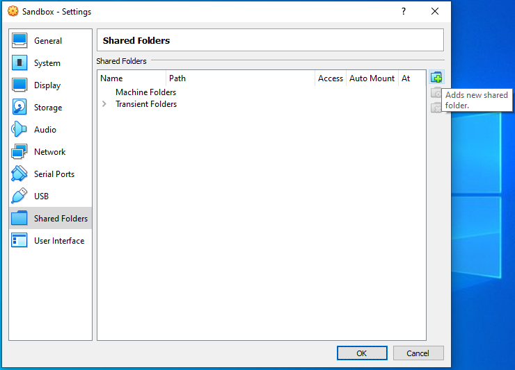 Shared Folders탭을 클릭한다.우측의 추가 버튼을 클릭한다.