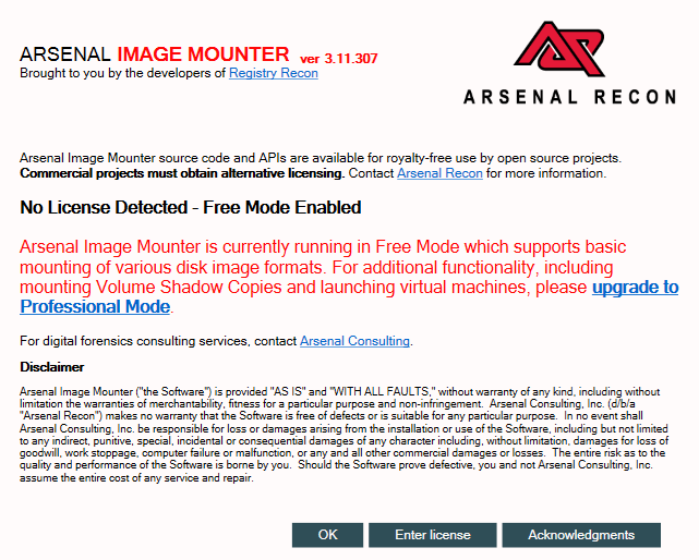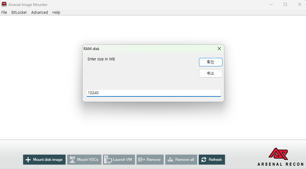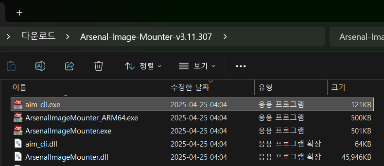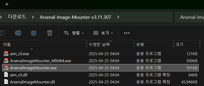 압축파일로 제공되는데, 압축을 풀고 x64 환경이니 ArsenalImageMounter.exe 를 실행했다.