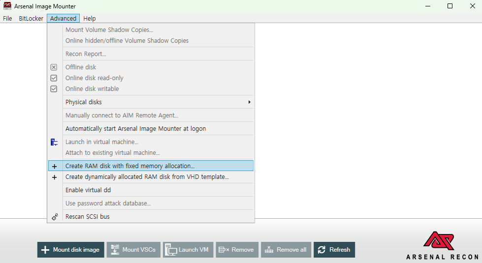 Arsenal Image Mounter를 통해 램디스크를 만들면,