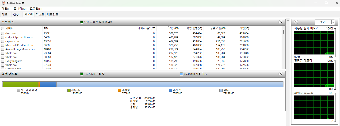 Driver Locked가 늘었다는 건, 커널 드라이버가 일부 물리 메모리를 전용으로 쓰고 있고, 그걸 시스템이 스와핑하지 못한다는 뜻.
