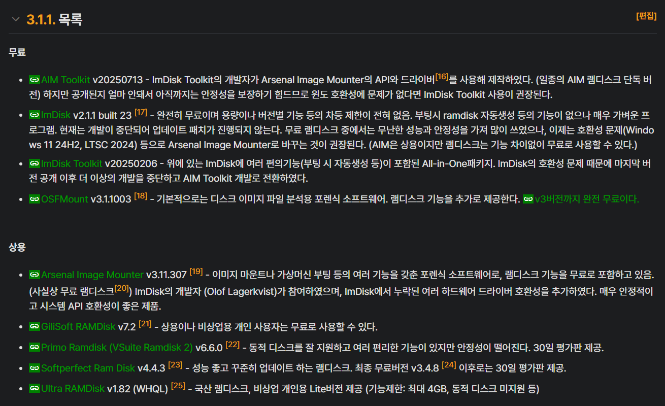 꺼무위키를 보는데 ImDisk를 대중적으로 쓰다가 호환성때문에 AIM 사용을 권장하는 듯 하다.