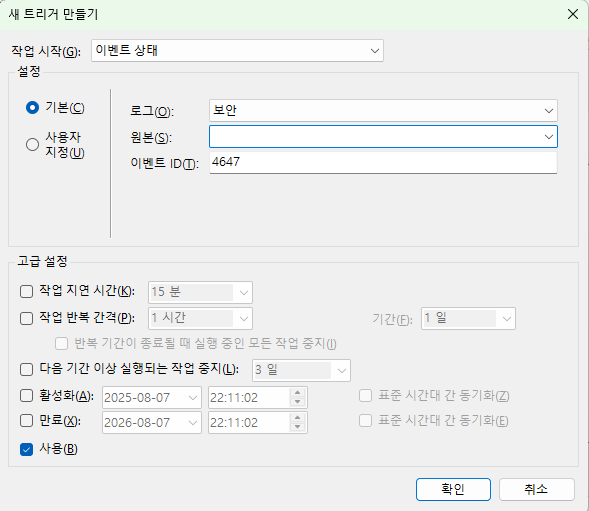 근데 아래와 같이 설정해도 이벤트 뷰어에 동일한 오류가 발생한다. 이유가 뭐지..?