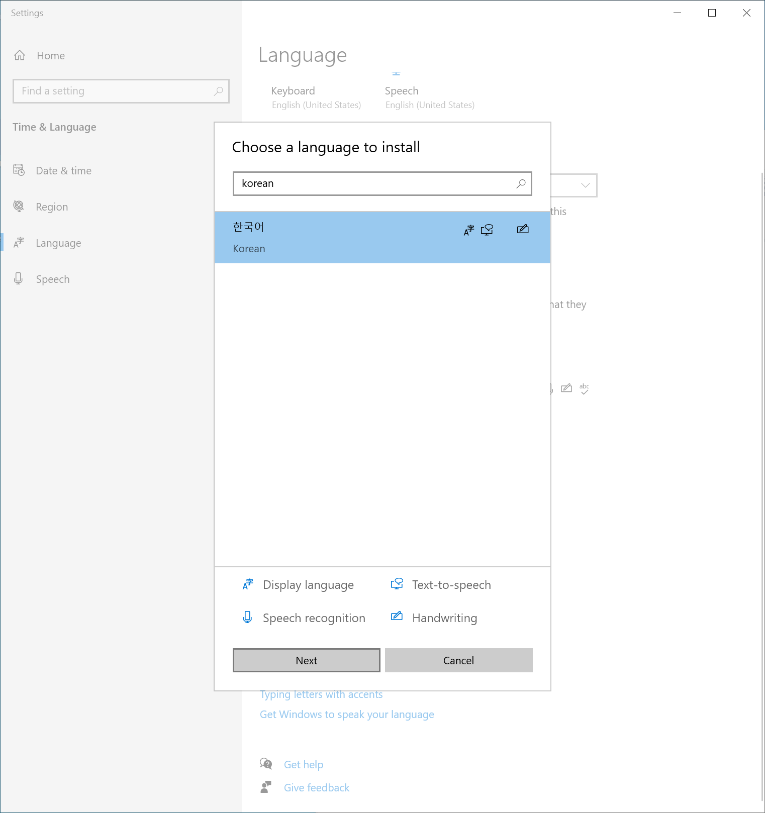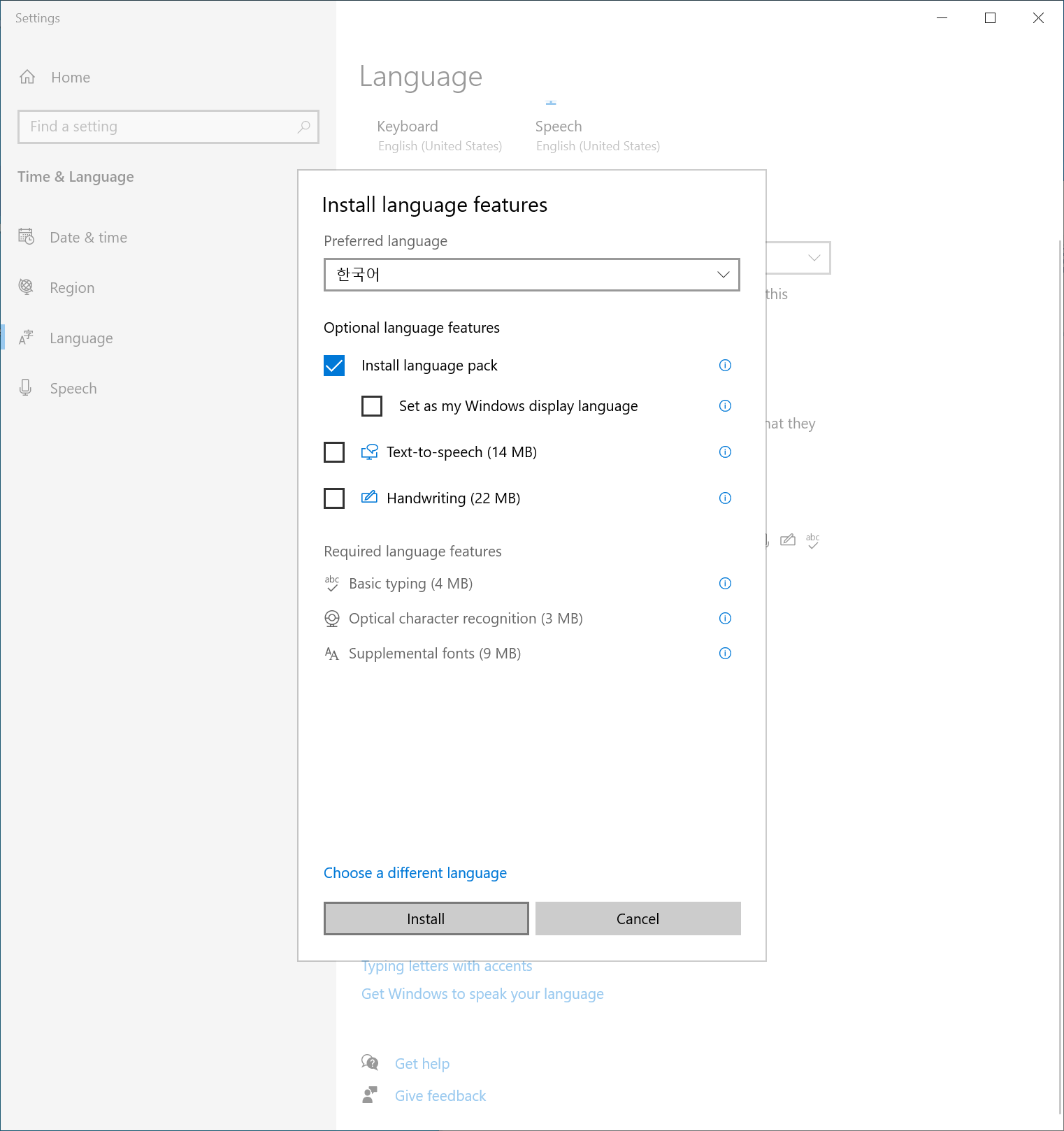 - 영어 버전으로 윈도우를 설치했더니 한글이 나오지 않아서, 언어팩 설치