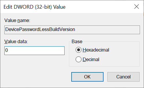 DevicePasswordLessBuildVersion의 값이 2인걸 볼 수 있는데, 0으로 변경