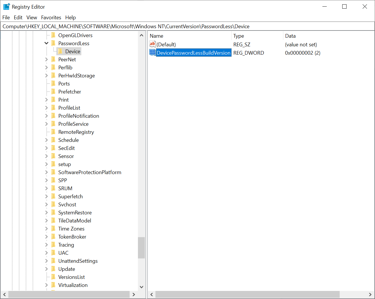 regedit입력Computer\HKEY_LOCAL_MACHINE\SOFTWARE\Microsoft\Windows NT\CurrentVersion\PasswordLess\Device경로로 이동클릭해서 찾아가기 힘든데, 화면 위 주소 창에 저거 복사해서 입력하면 된다.